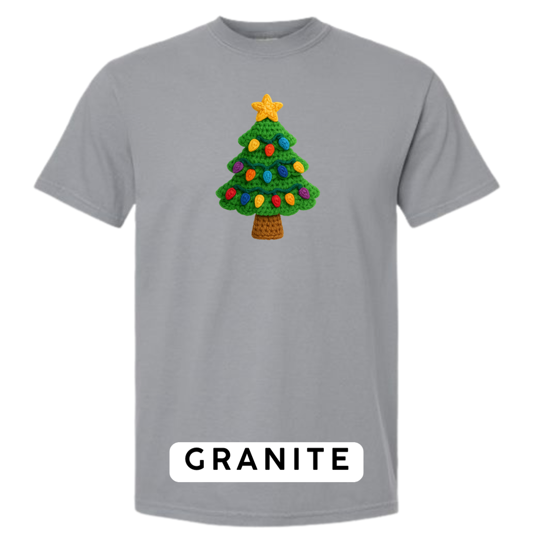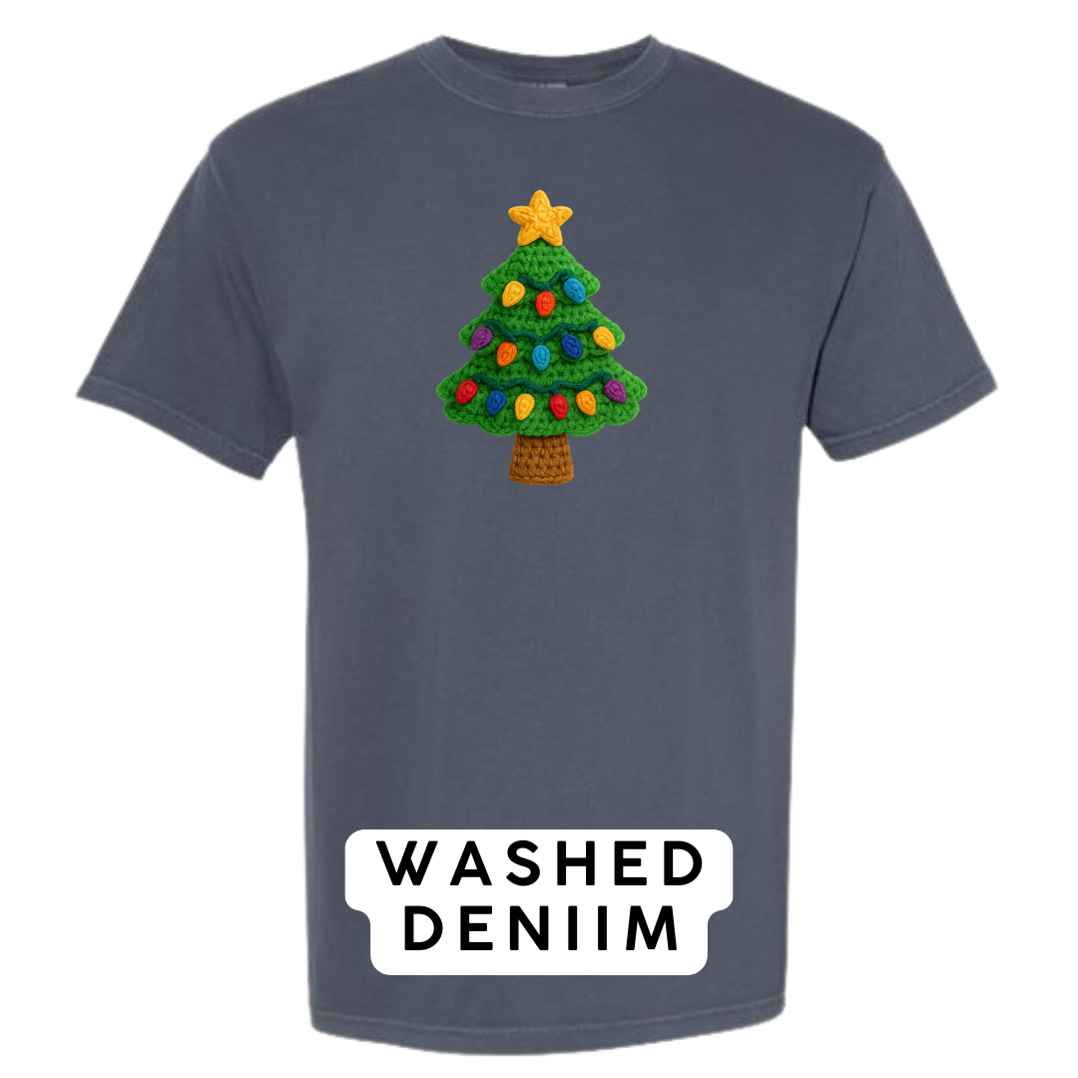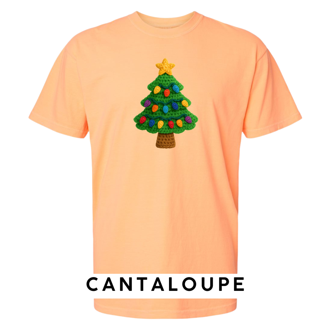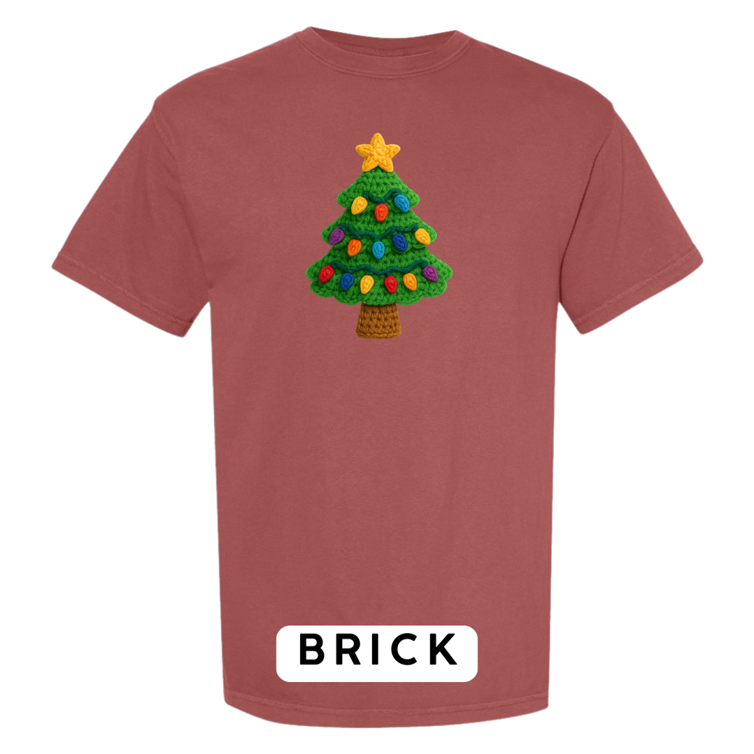This adorable chunky-knit Christmas tree shines bright with multicolor retro lights and a soft golden star topper. It’s the perfect cozy holiday design for anyone who loves colorful, cheerful Christmas décor.