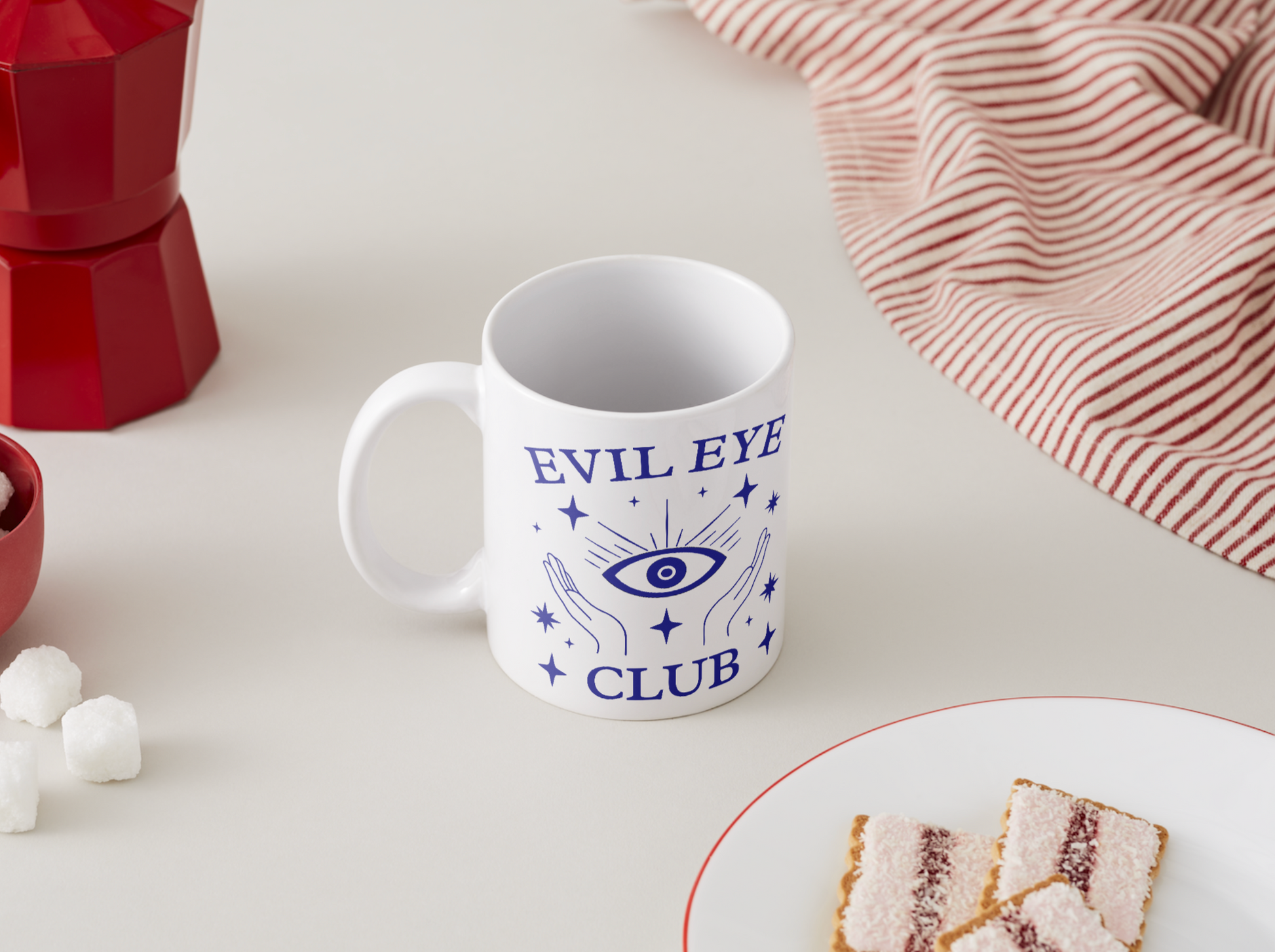 Our Evil Eye Club mug is more than just drinkware—it’s a daily ritual of warding off negativity and inviting in clarity, protection, and strength. Designed for those who believe in the power of energy, symbols, and sacred moments, this mug blends function with meaning. The mesmerizing evil eye motif, surrounded by delicate celestial and botanical accents, makes this a truly captivating piece.