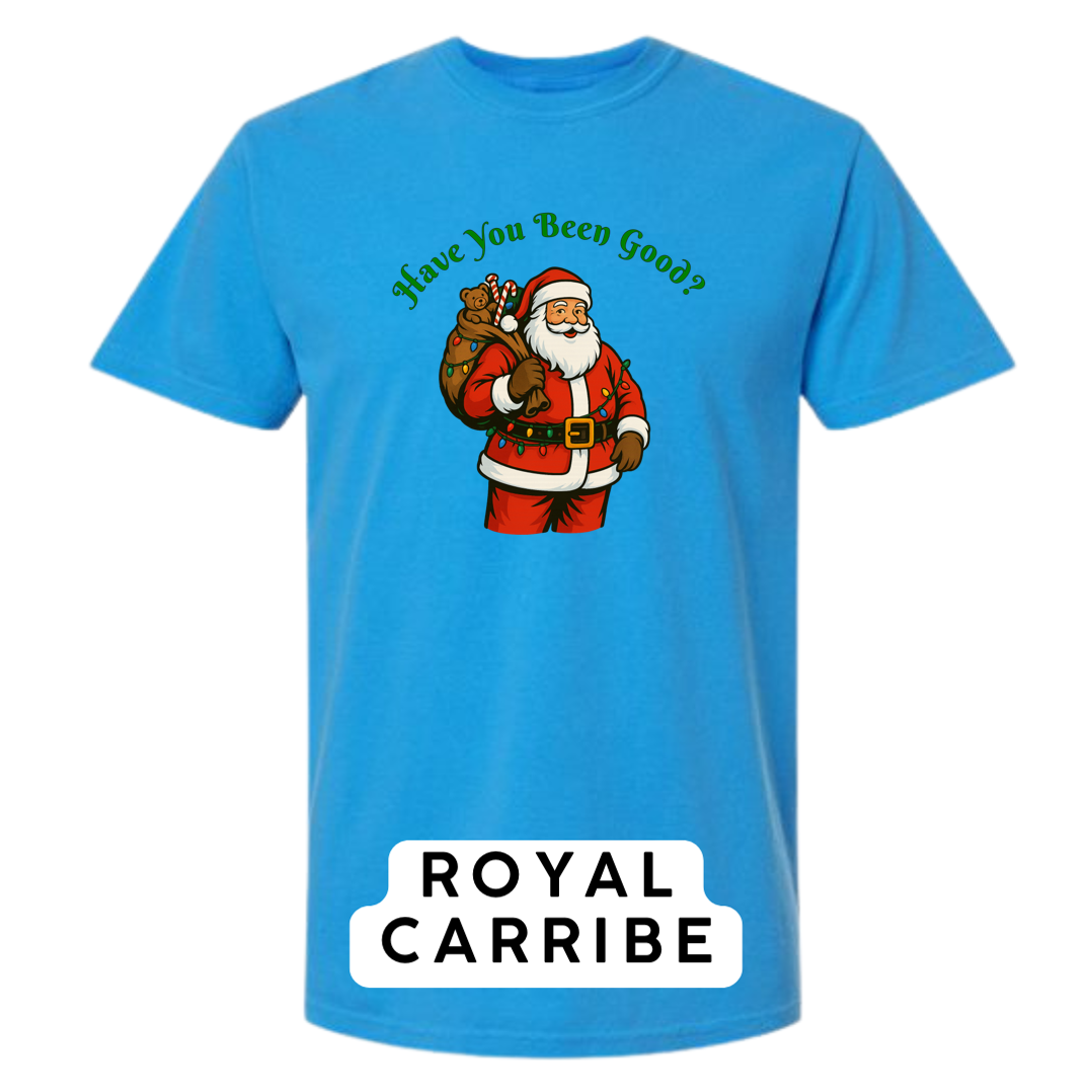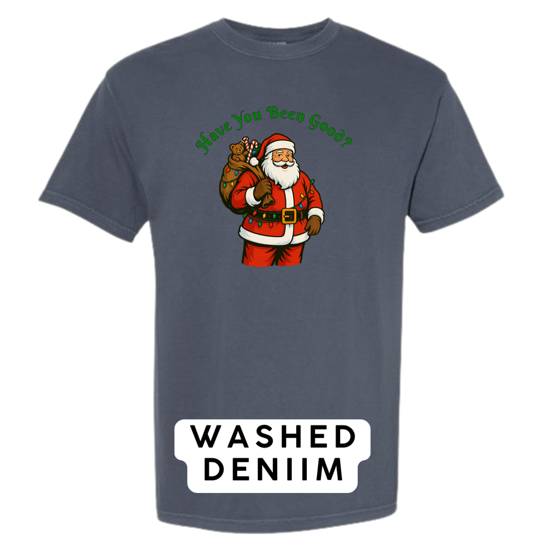 Above Santa, the playful caption “Have You Been Good?” makes this shirt both fun and festive — perfect for family gatherings, holiday parties, or cozy nights by the fire.