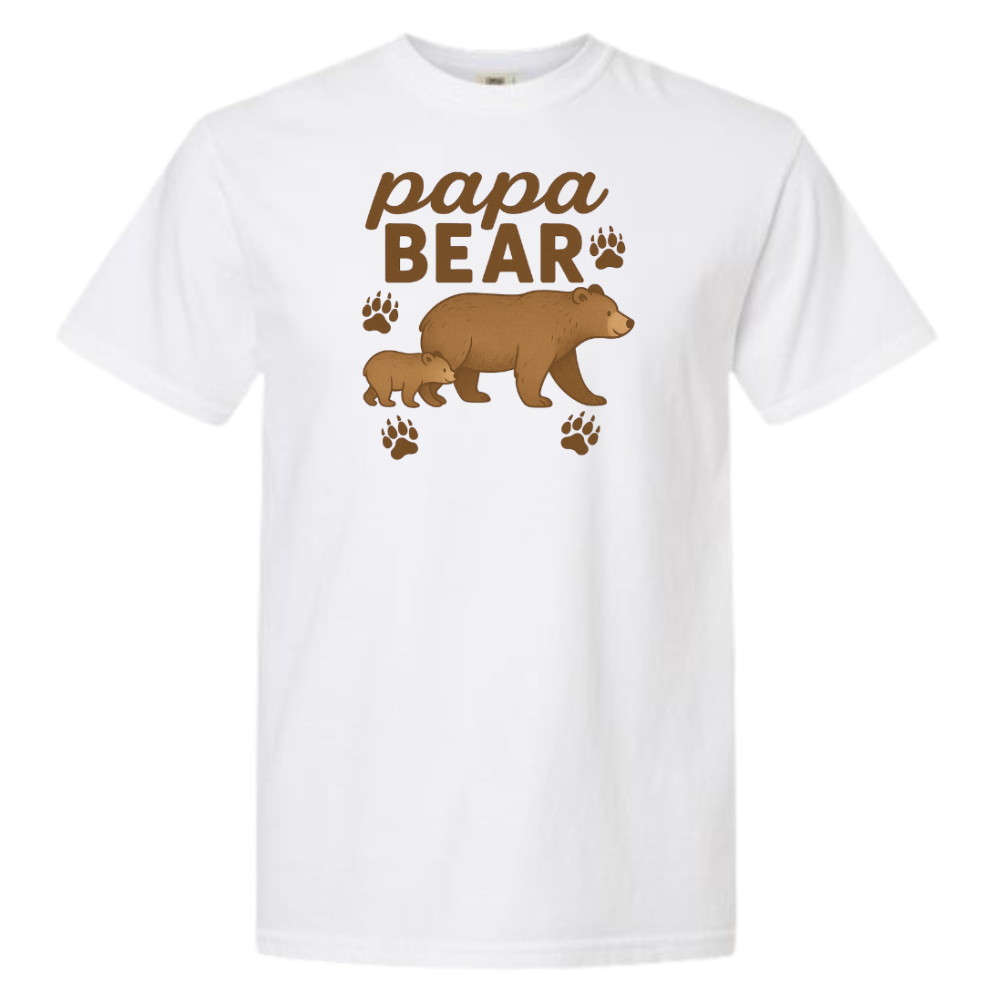 Strong, steady, and always looking out—our Papa Bear tee is a proud nod to all the dads who lead with heart and protect with power. Featuring a papa and baby bear duo, earthy tones, and playful paw prints, this tee is perfect for showing off that bold fatherly love in the cutest way possible.