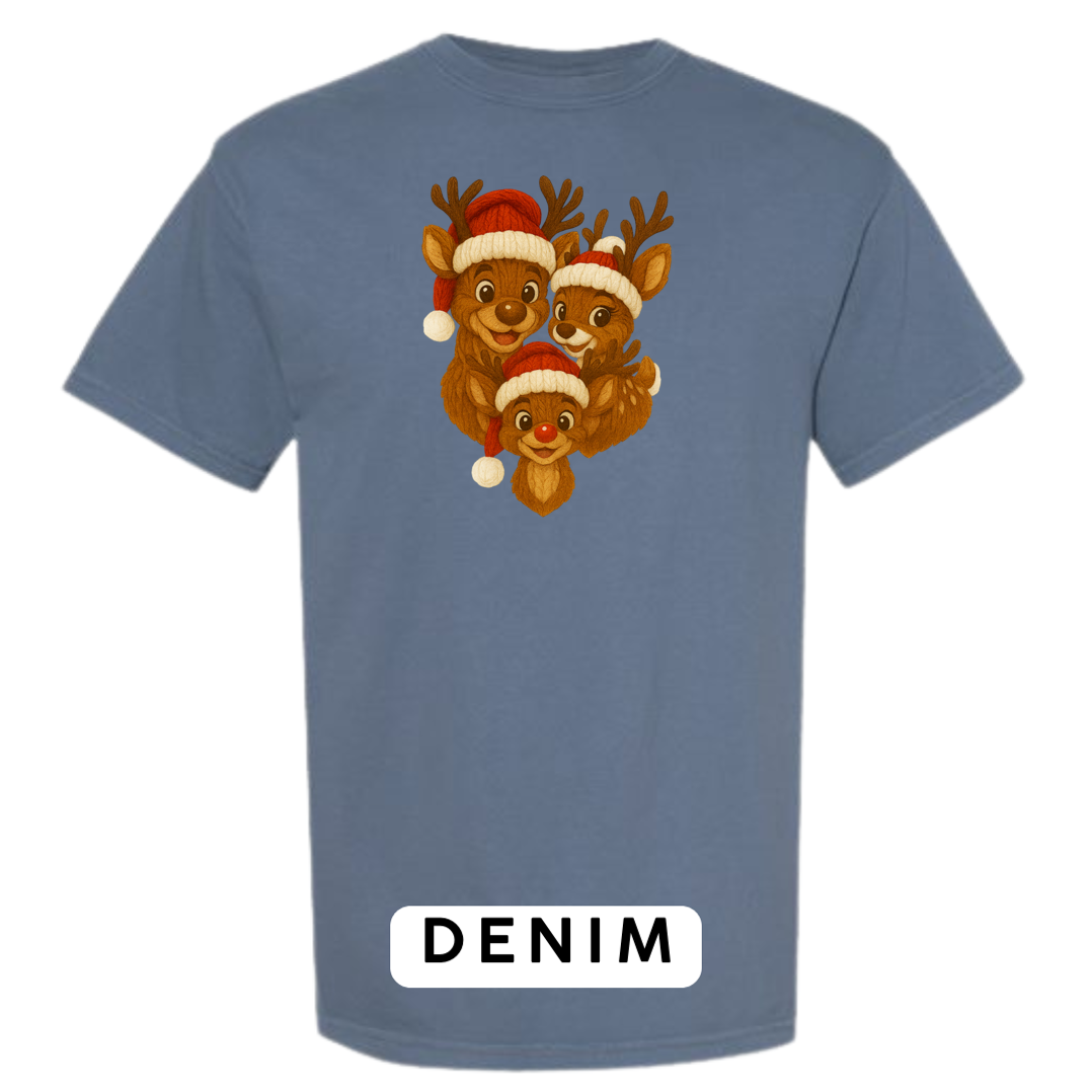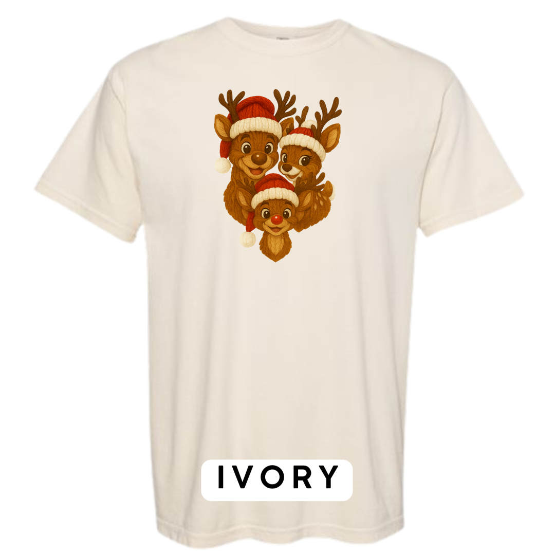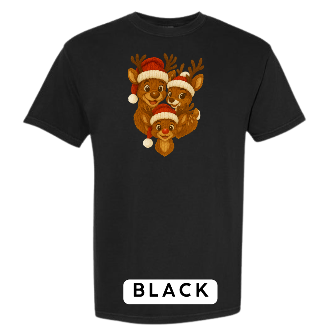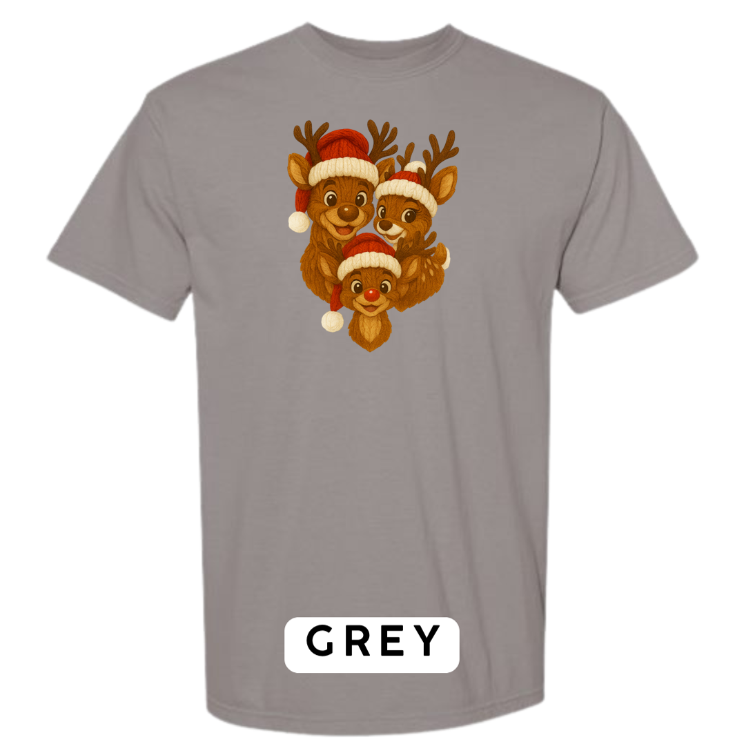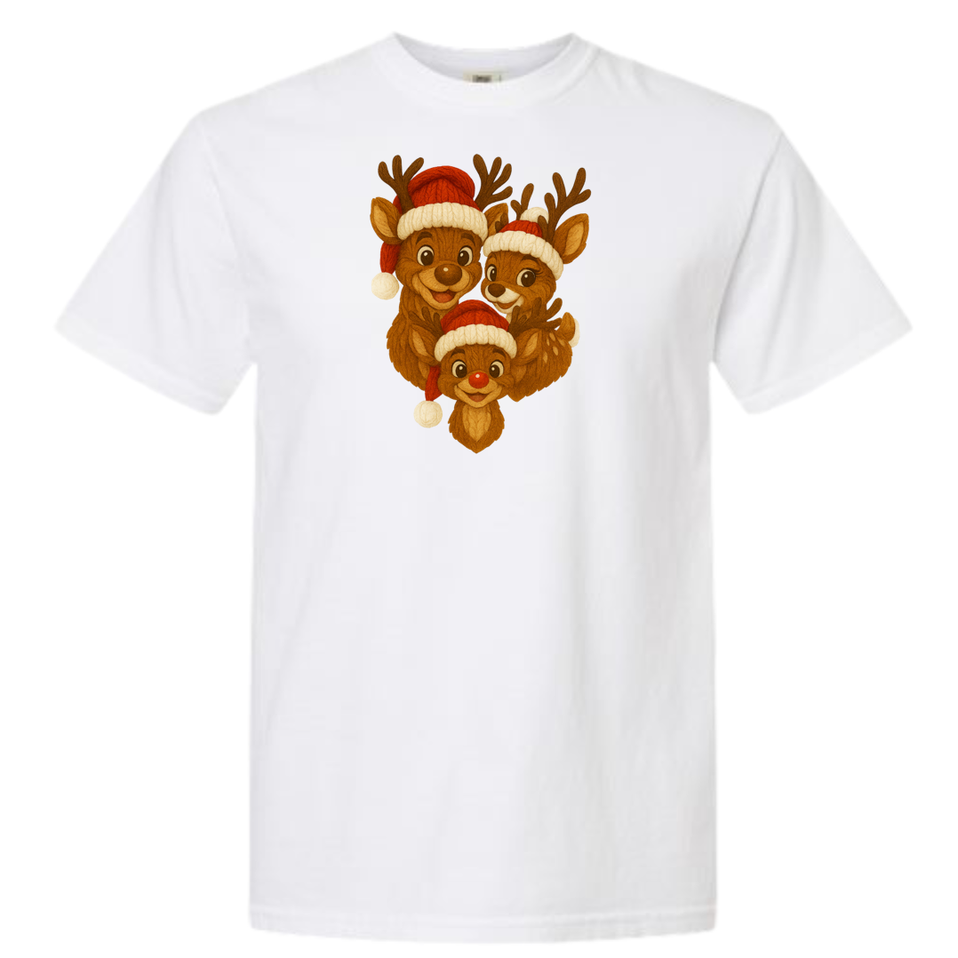 Bring heart-melting holiday charm to your wardrobe or gifts with this adorable Knitted Reindeer Family design. Featuring a smiling papa, mama, and baby reindeer in cozy Santa hats, this artwork blends warm Christmas vibes with a handmade knitted aesthetic that pops beautifully on any product.