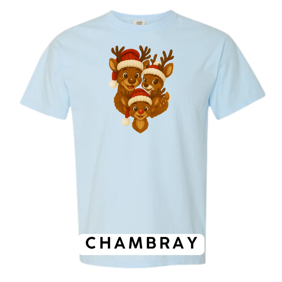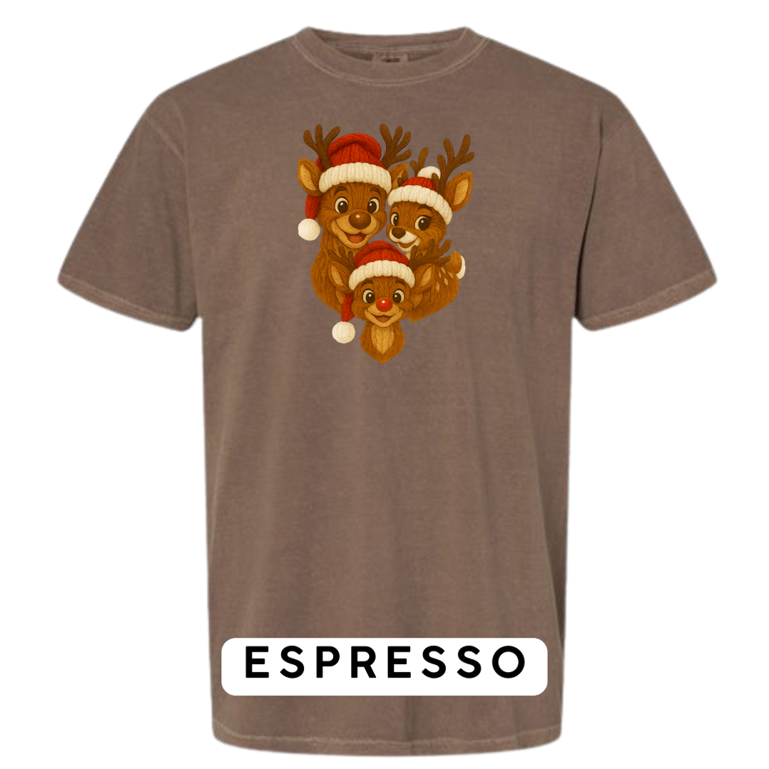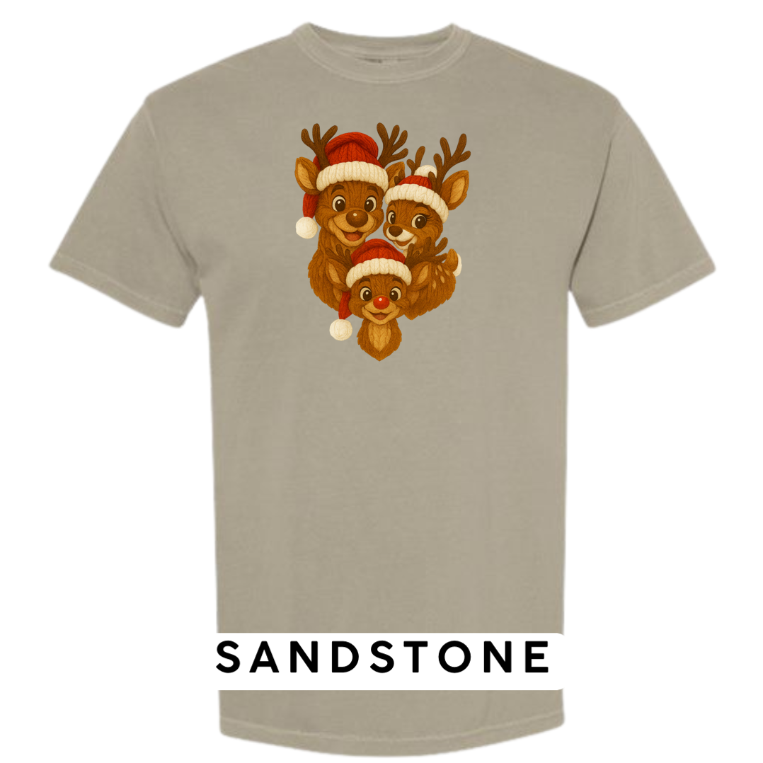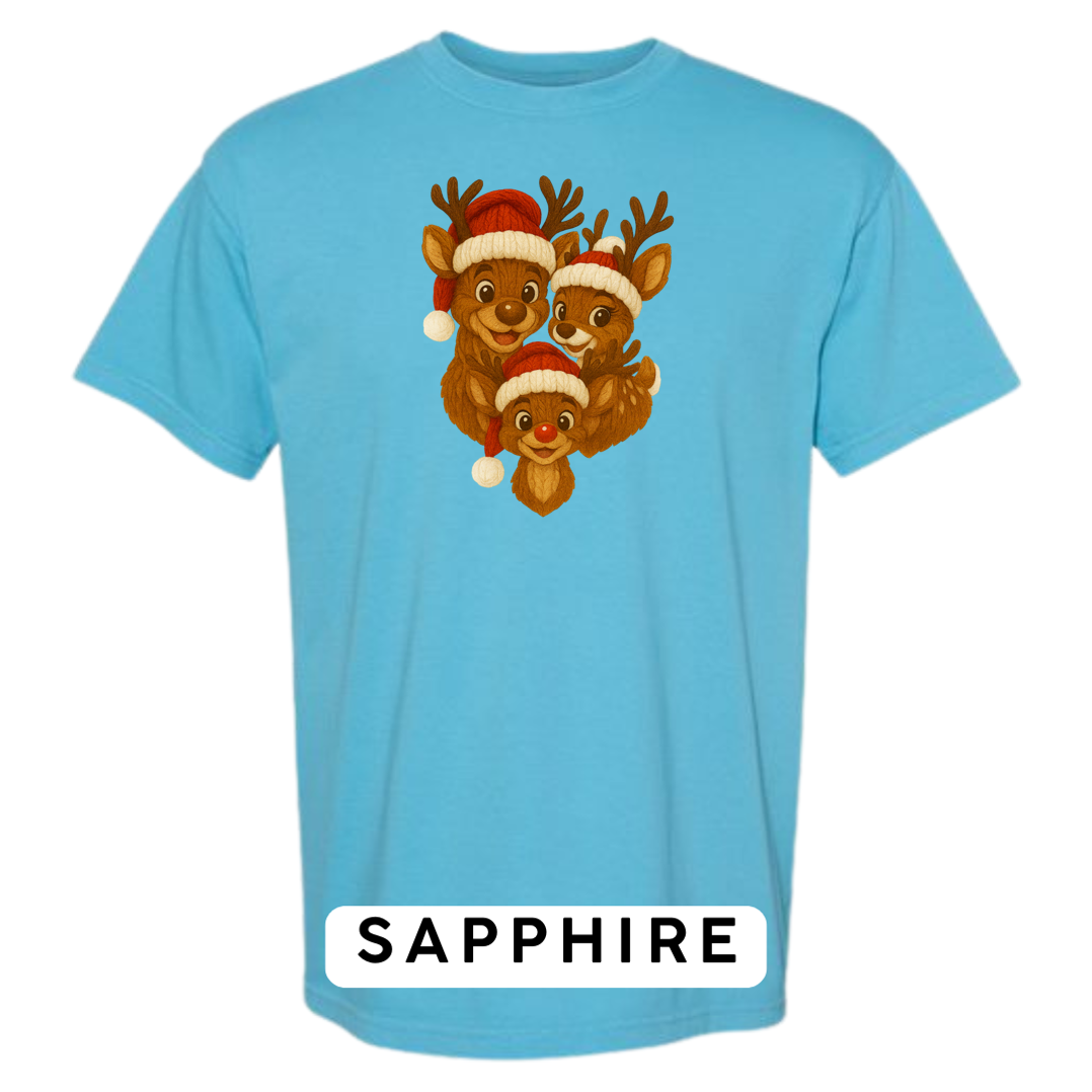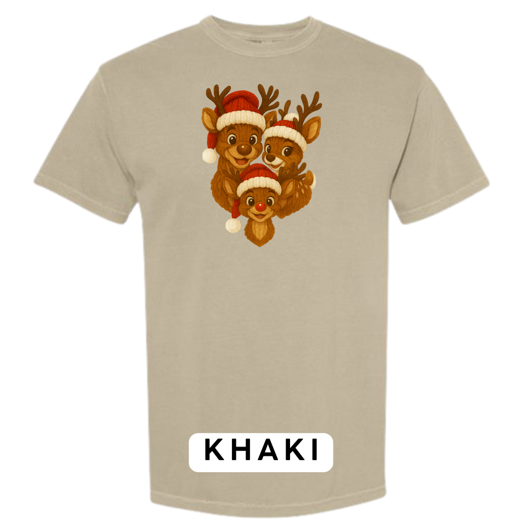 Bring heart-melting holiday charm to your wardrobe or gifts with this adorable Knitted Reindeer Family design. Featuring a smiling papa, mama, and baby reindeer in cozy Santa hats, this artwork blends warm Christmas vibes with a handmade knitted aesthetic that pops beautifully on any product.
