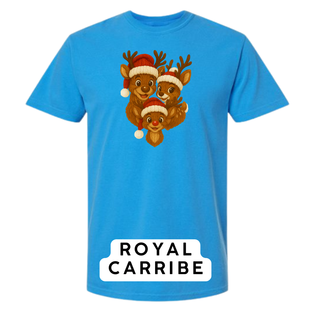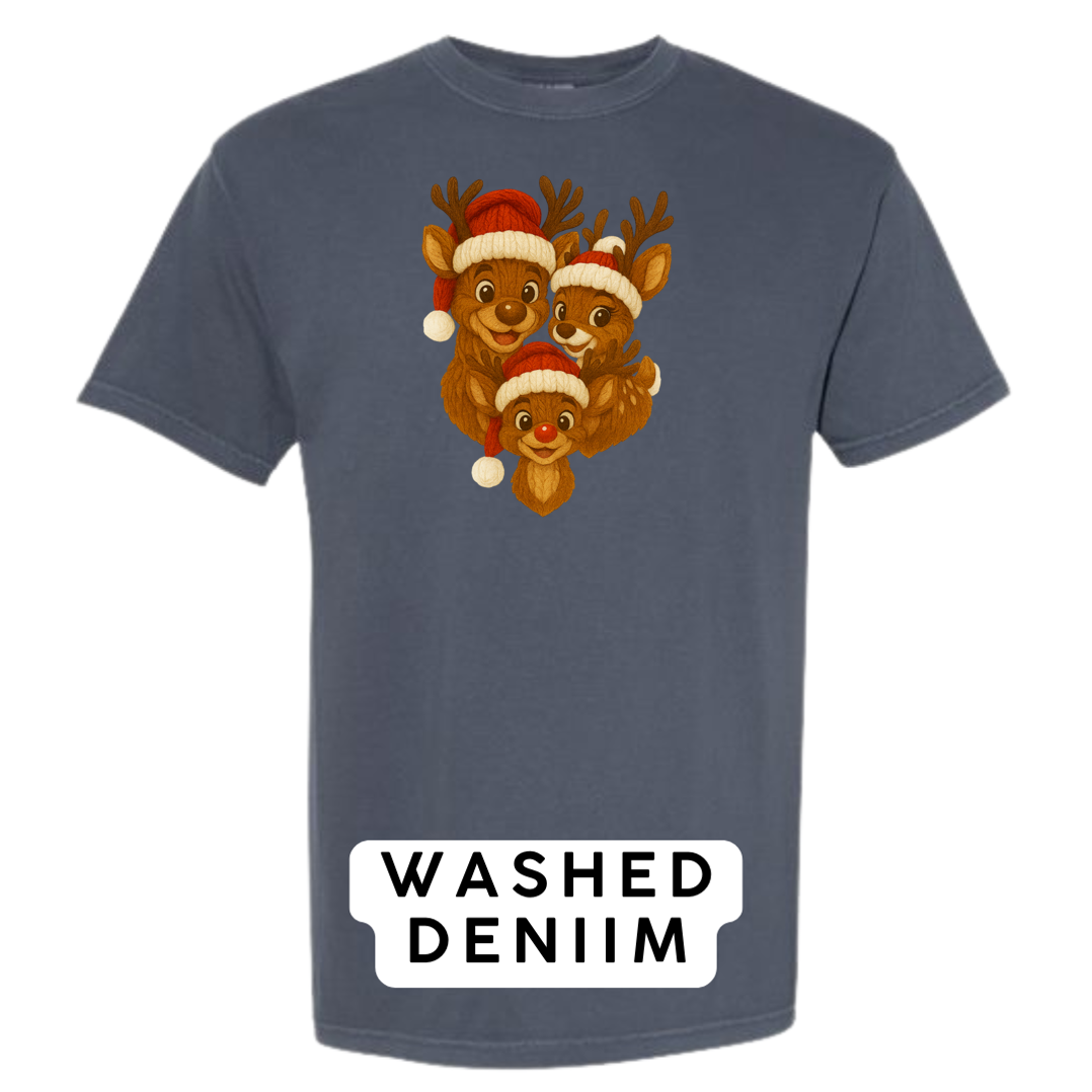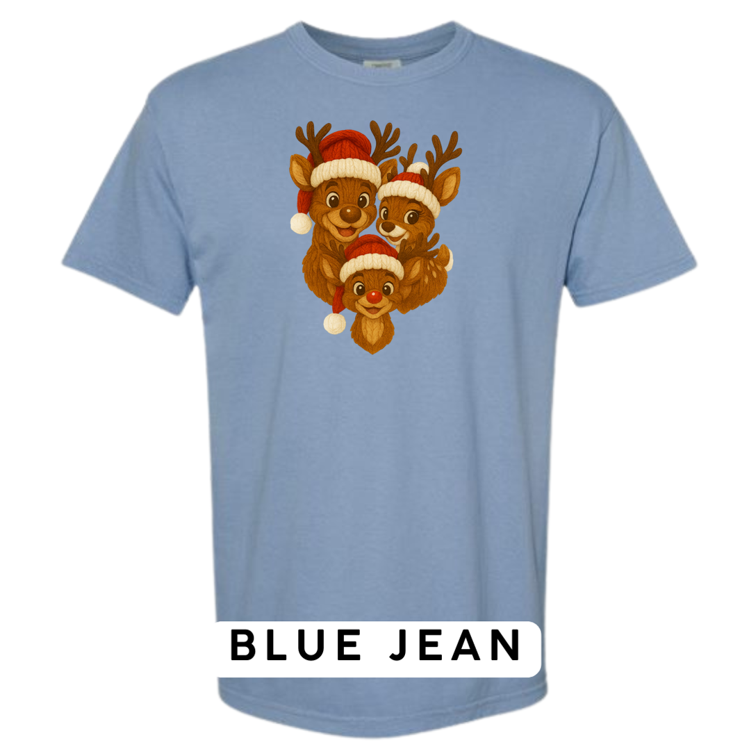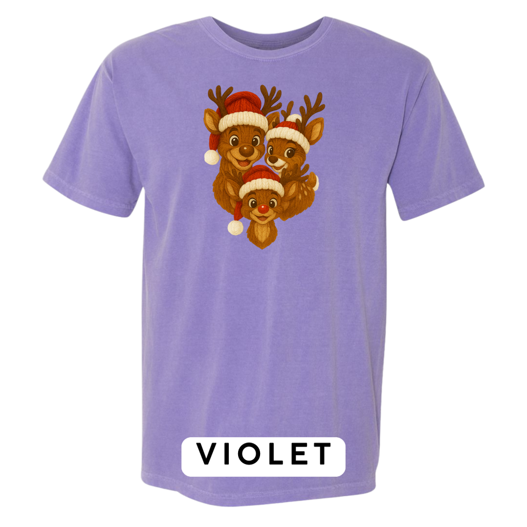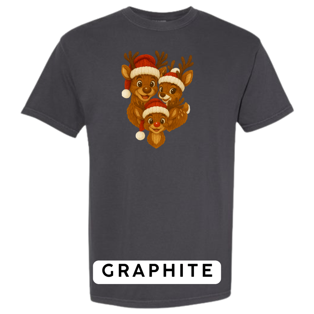 Bring heart-melting holiday charm to your wardrobe or gifts with this adorable Knitted Reindeer Family design. Featuring a smiling papa, mama, and baby reindeer in cozy Santa hats, this artwork blends warm Christmas vibes with a handmade knitted aesthetic that pops beautifully on any product.