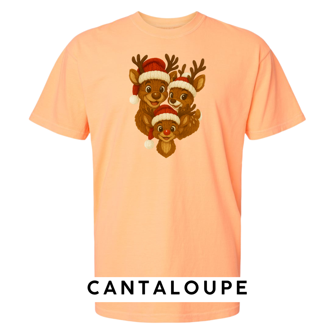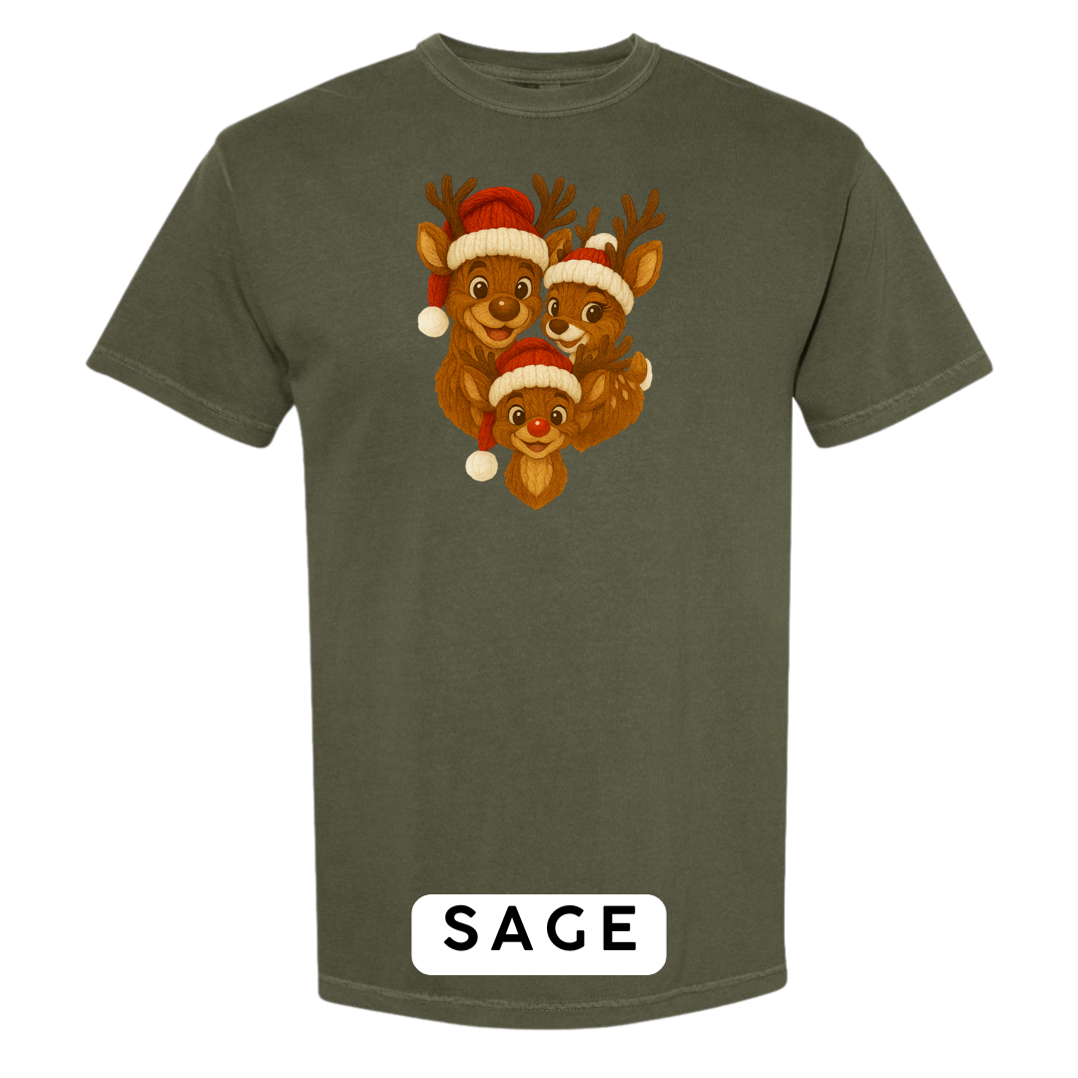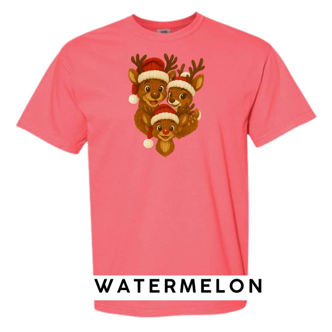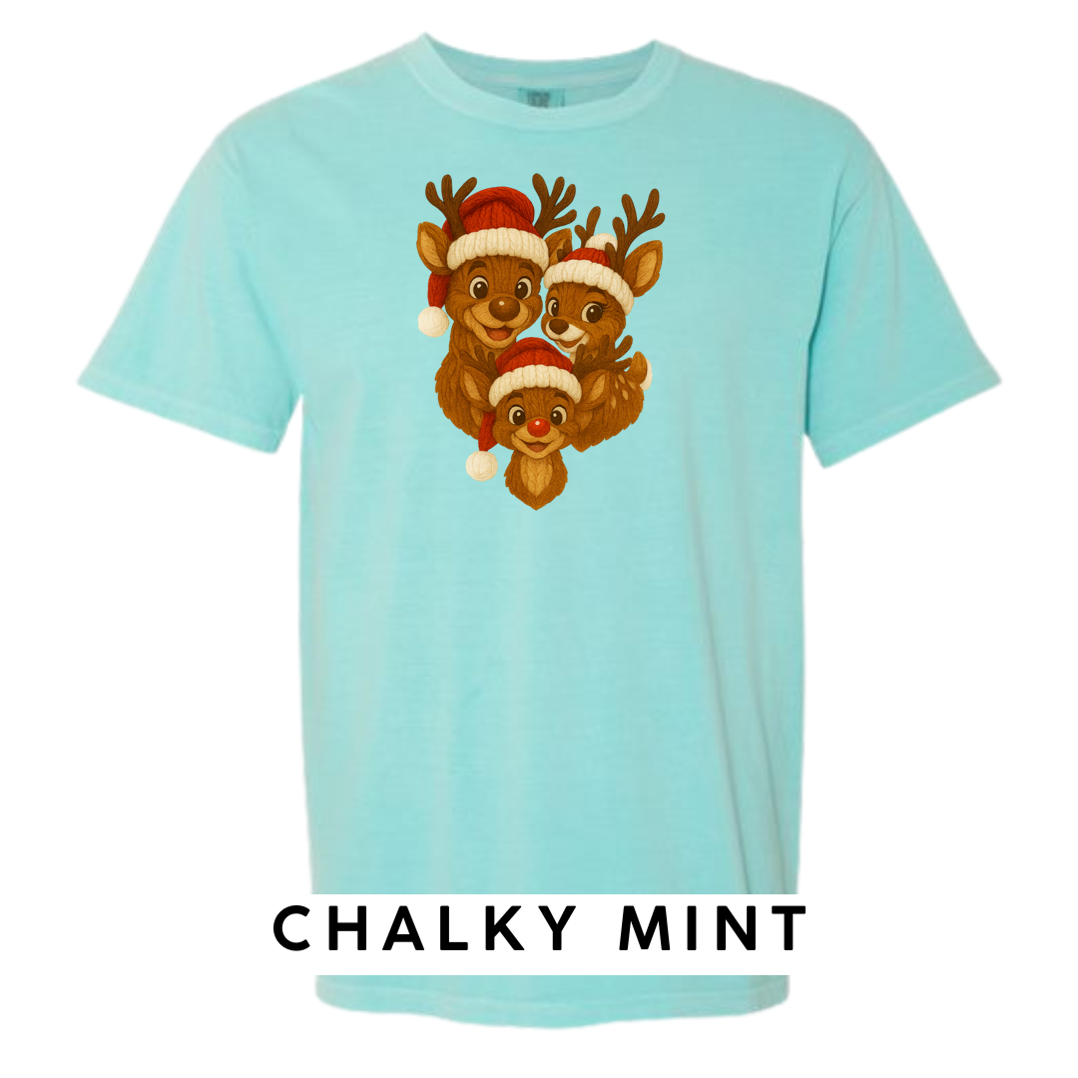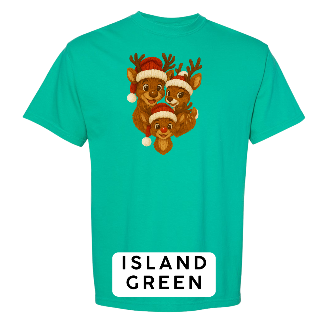 Bring heart-melting holiday charm to your wardrobe or gifts with this adorable Knitted Reindeer Family design. Featuring a smiling papa, mama, and baby reindeer in cozy Santa hats, this artwork blends warm Christmas vibes with a handmade knitted aesthetic that pops beautifully on any product.