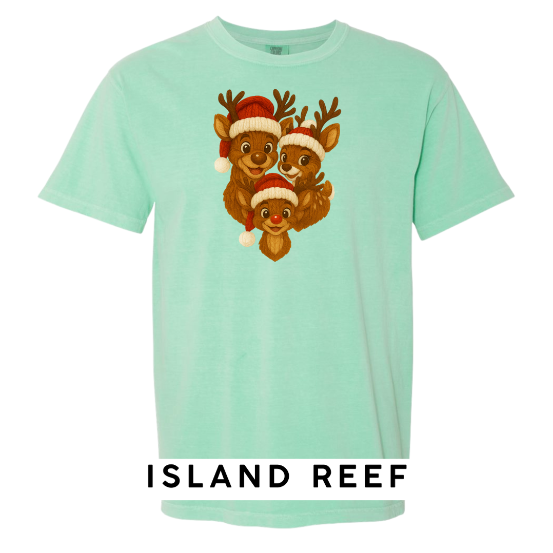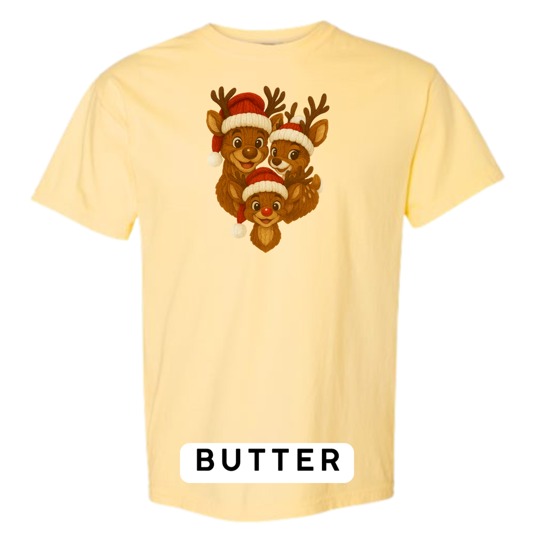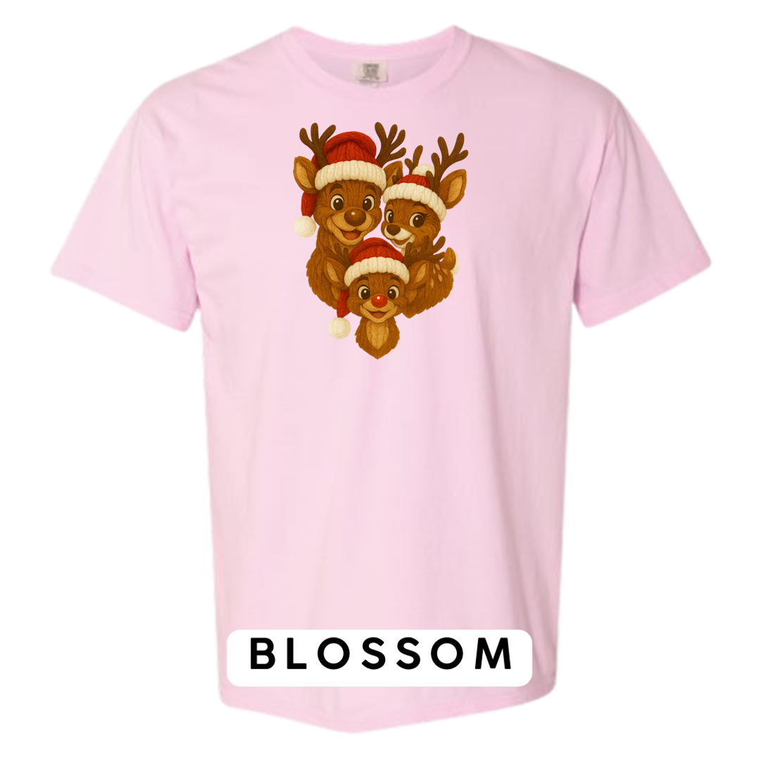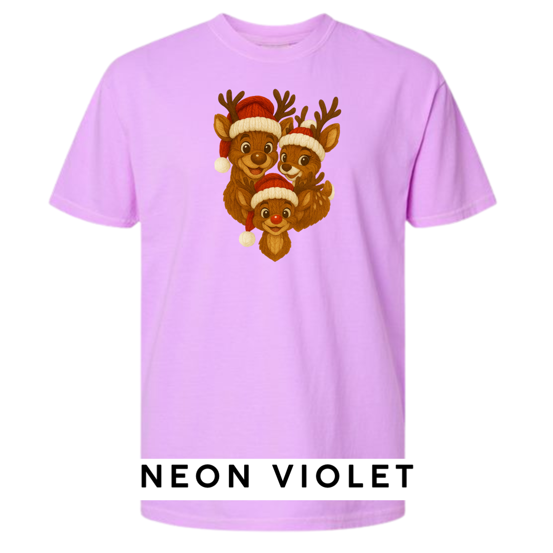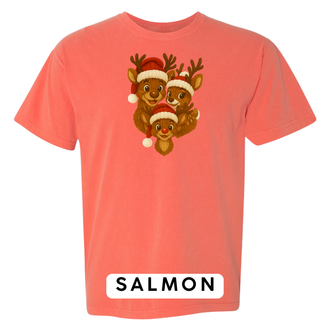 Bring heart-melting holiday charm to your wardrobe or gifts with this adorable Knitted Reindeer Family design. Featuring a smiling papa, mama, and baby reindeer in cozy Santa hats, this artwork blends warm Christmas vibes with a handmade knitted aesthetic that pops beautifully on any product.