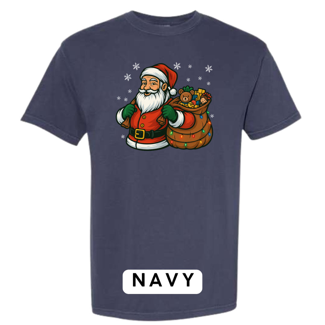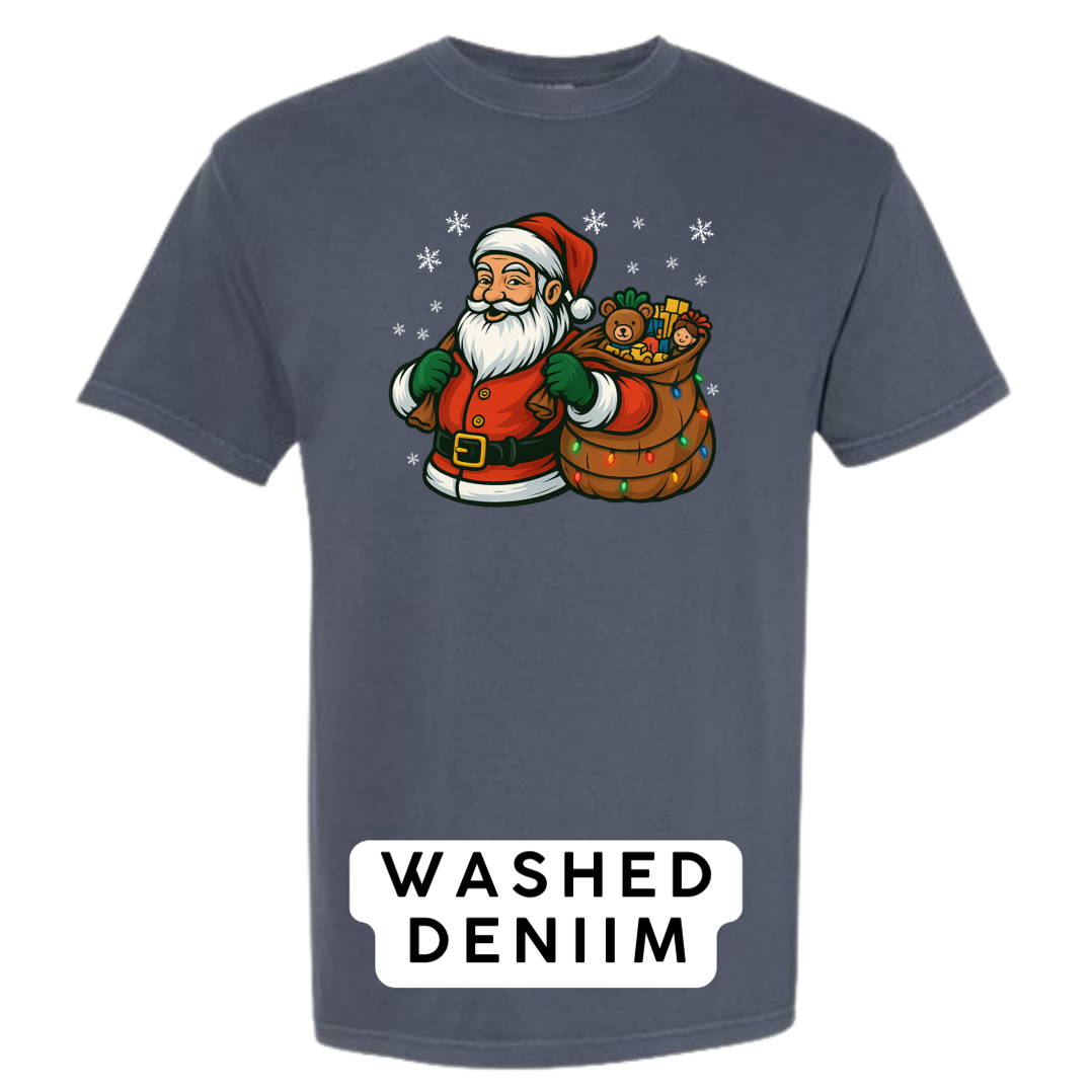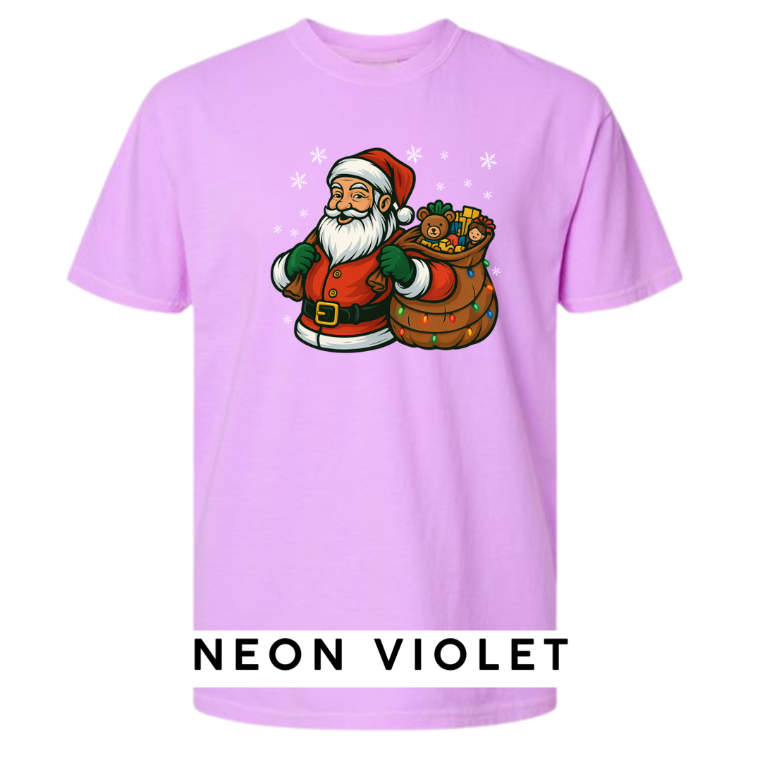 Exclusive Artwork – Santa with toys, gifts, and holiday lights