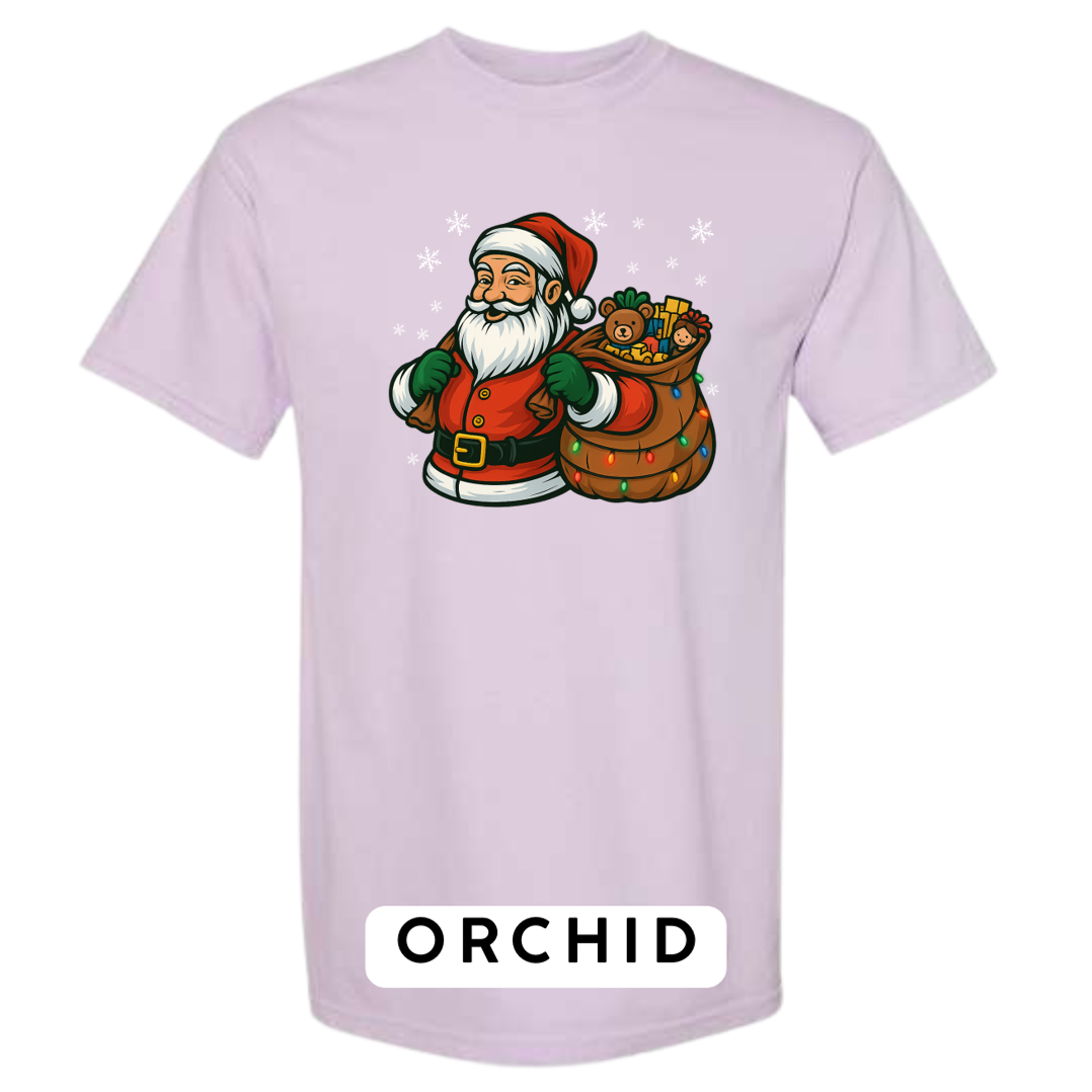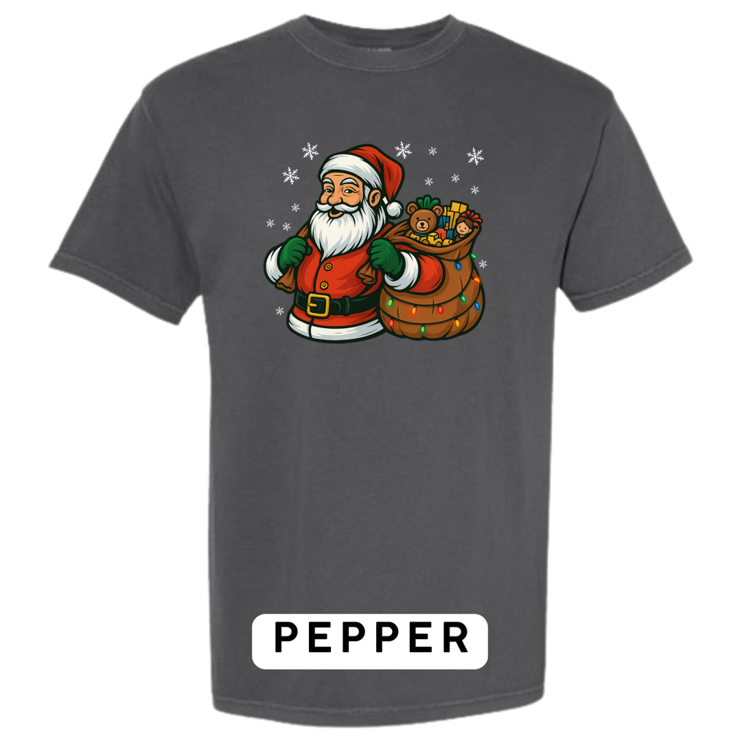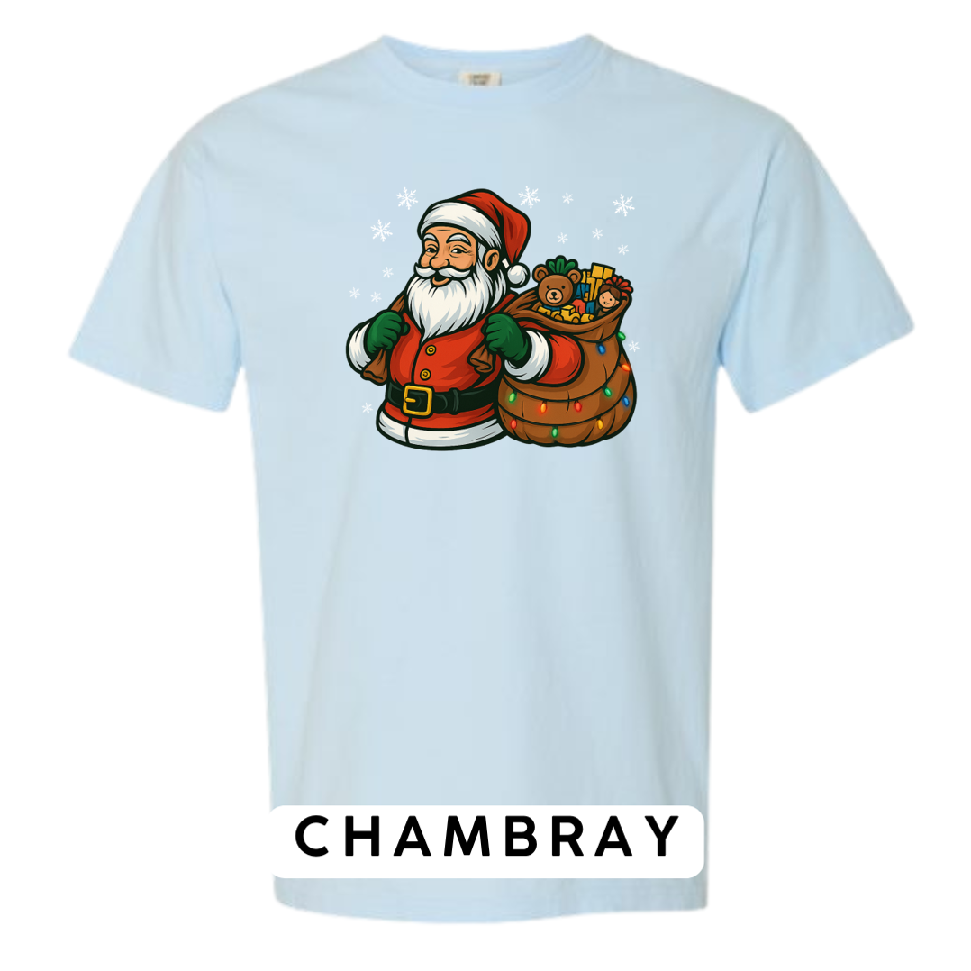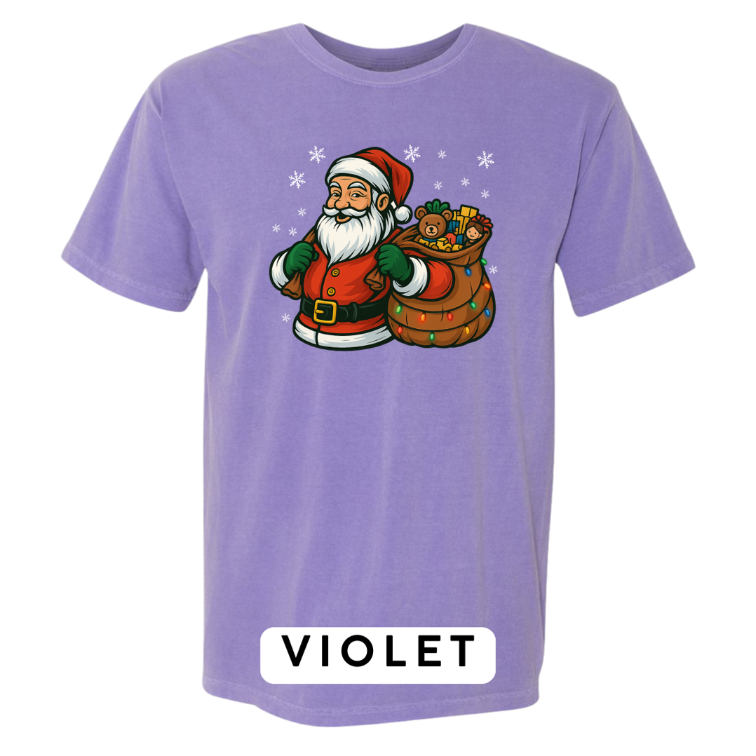 Exclusive Artwork – Santa with toys, gifts, and holiday lights