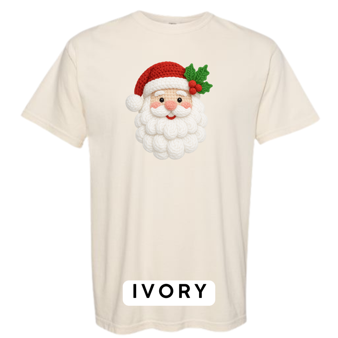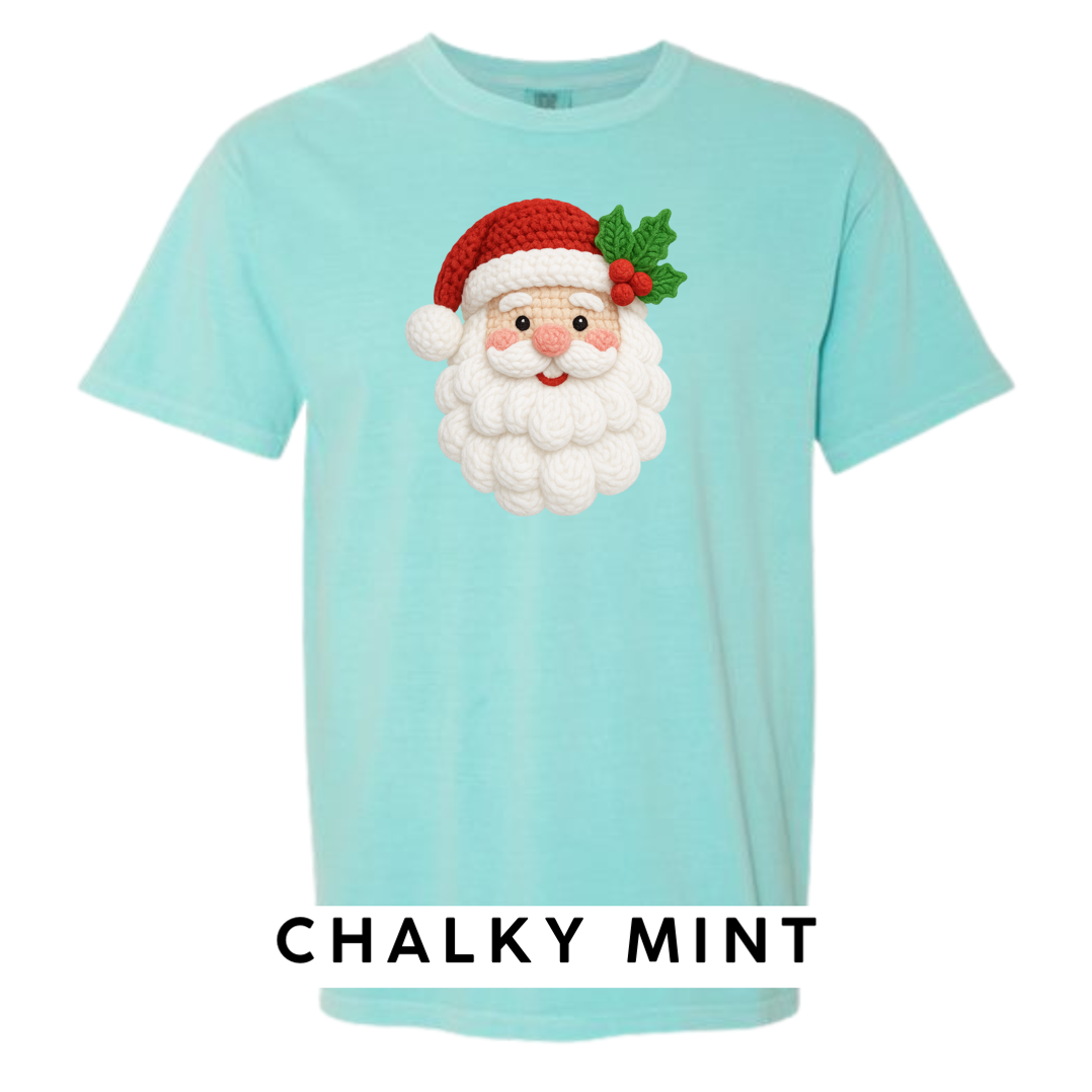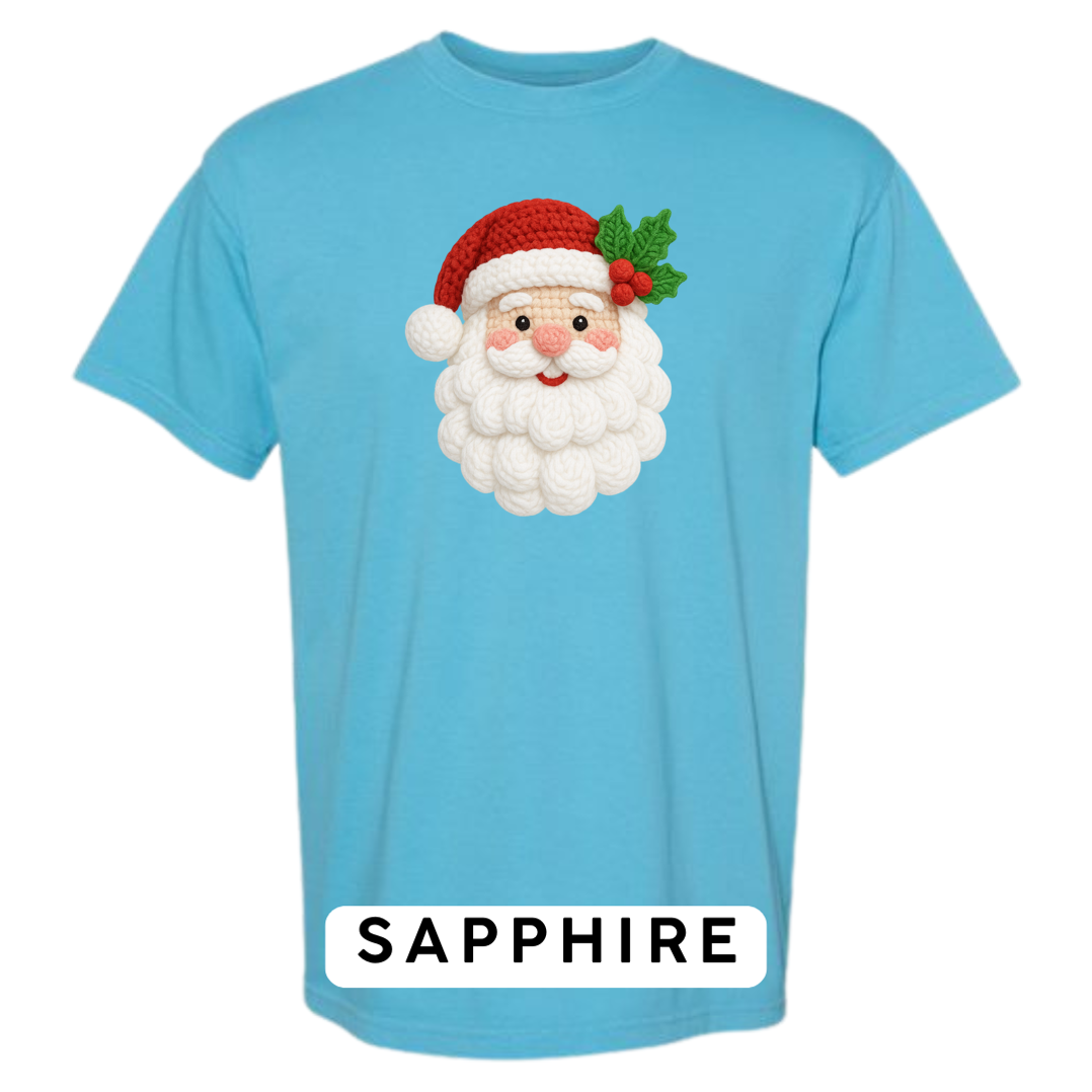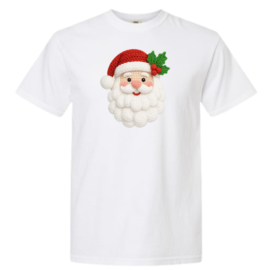 This adorable knitted-style Santa design brings warmth, whimsy, and Christmas cheer to any product! Featuring a plush yarn-textured beard, rosy cheeks, a classic red hat, and festive holly, this design looks like it came straight from a handmade holiday craft fair.