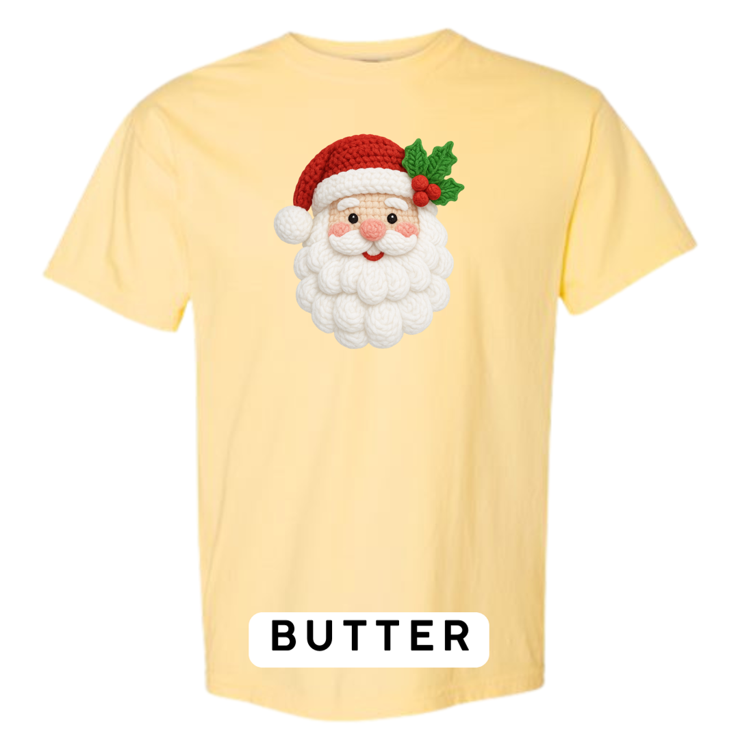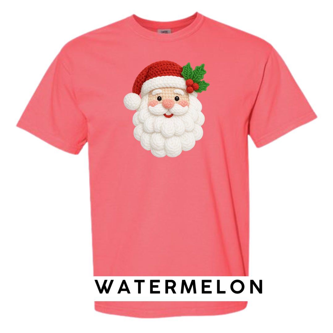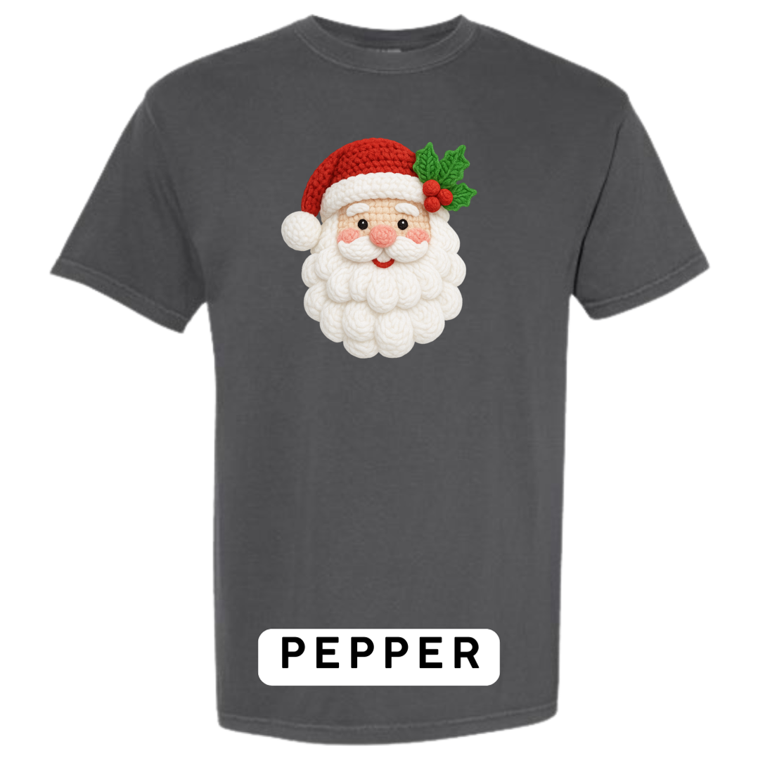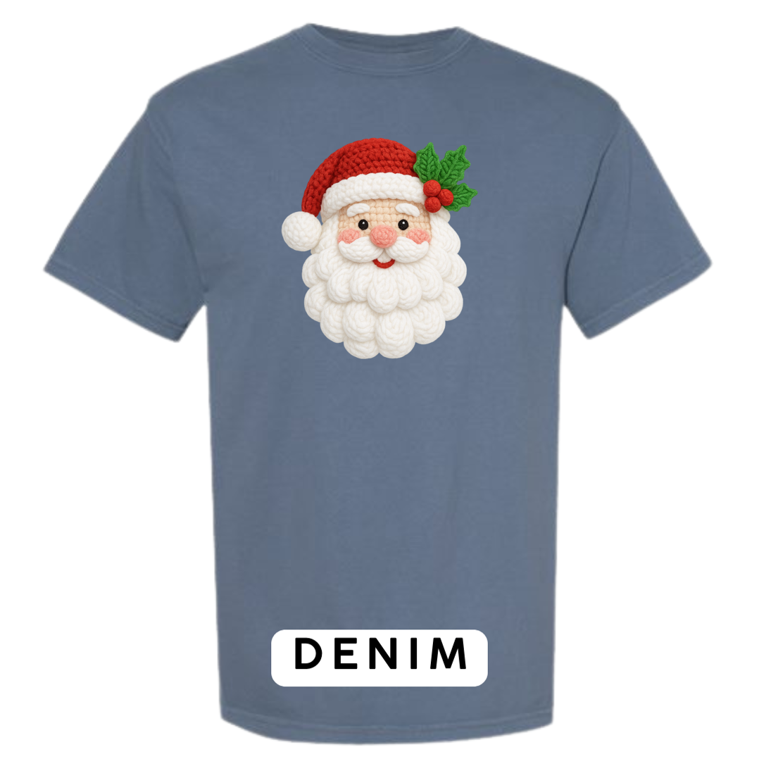 This adorable knitted-style Santa design brings warmth, whimsy, and Christmas cheer to any product! Featuring a plush yarn-textured beard, rosy cheeks, a classic red hat, and festive holly, this design looks like it came straight from a handmade holiday craft fair.