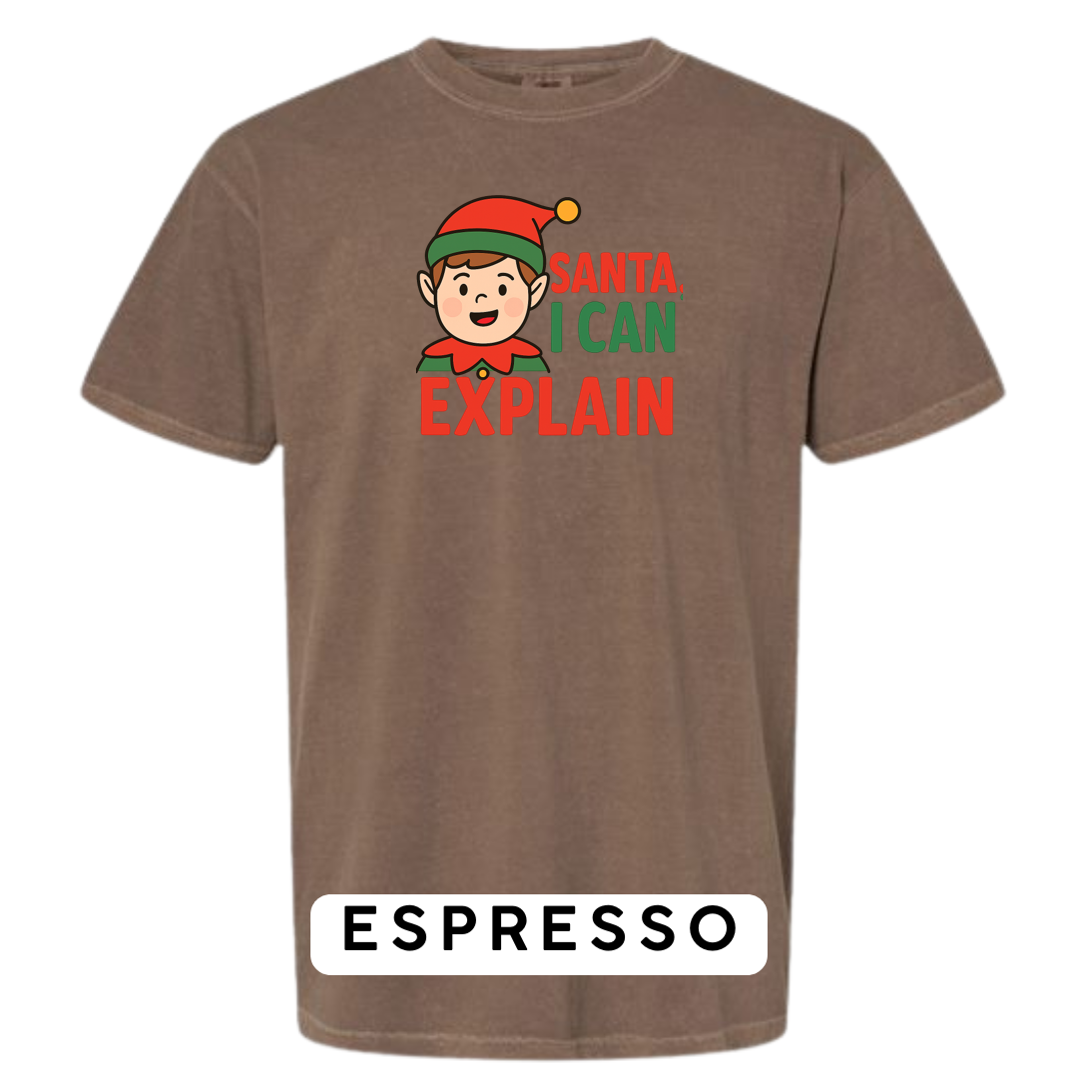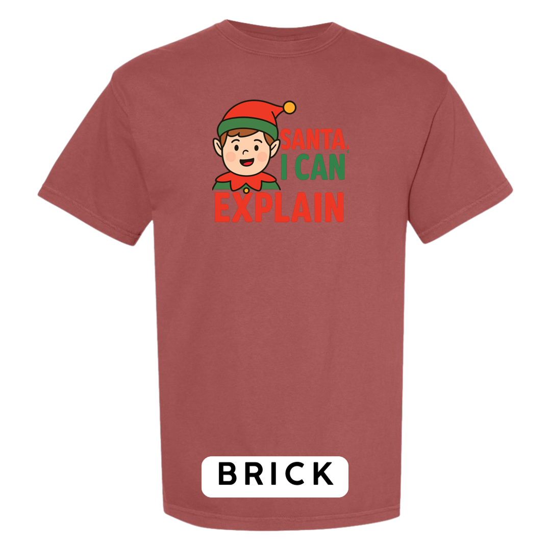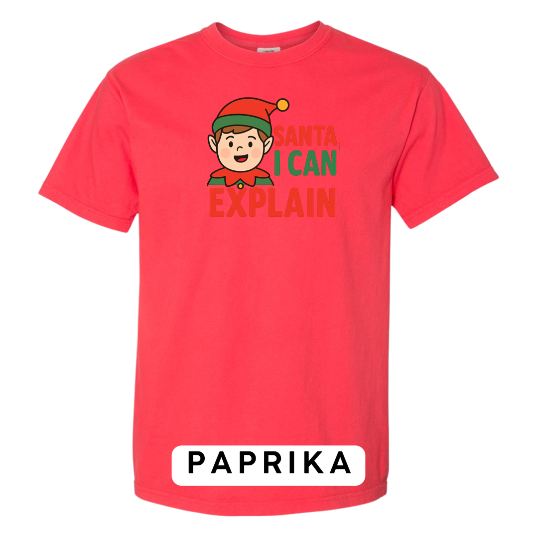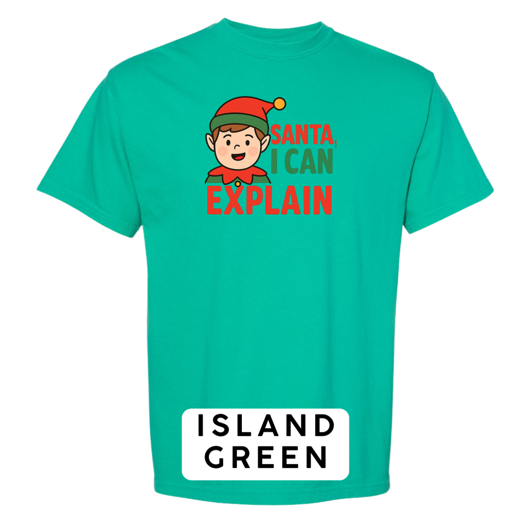 Add some playful holiday mischief to your wardrobe with this adorable “Santa, I Can Explain” elf design! Featuring a smiling cartoon elf and bold Christmas lettering, this design is perfect for anyone who loves humor, cuteness, and festive vibes.