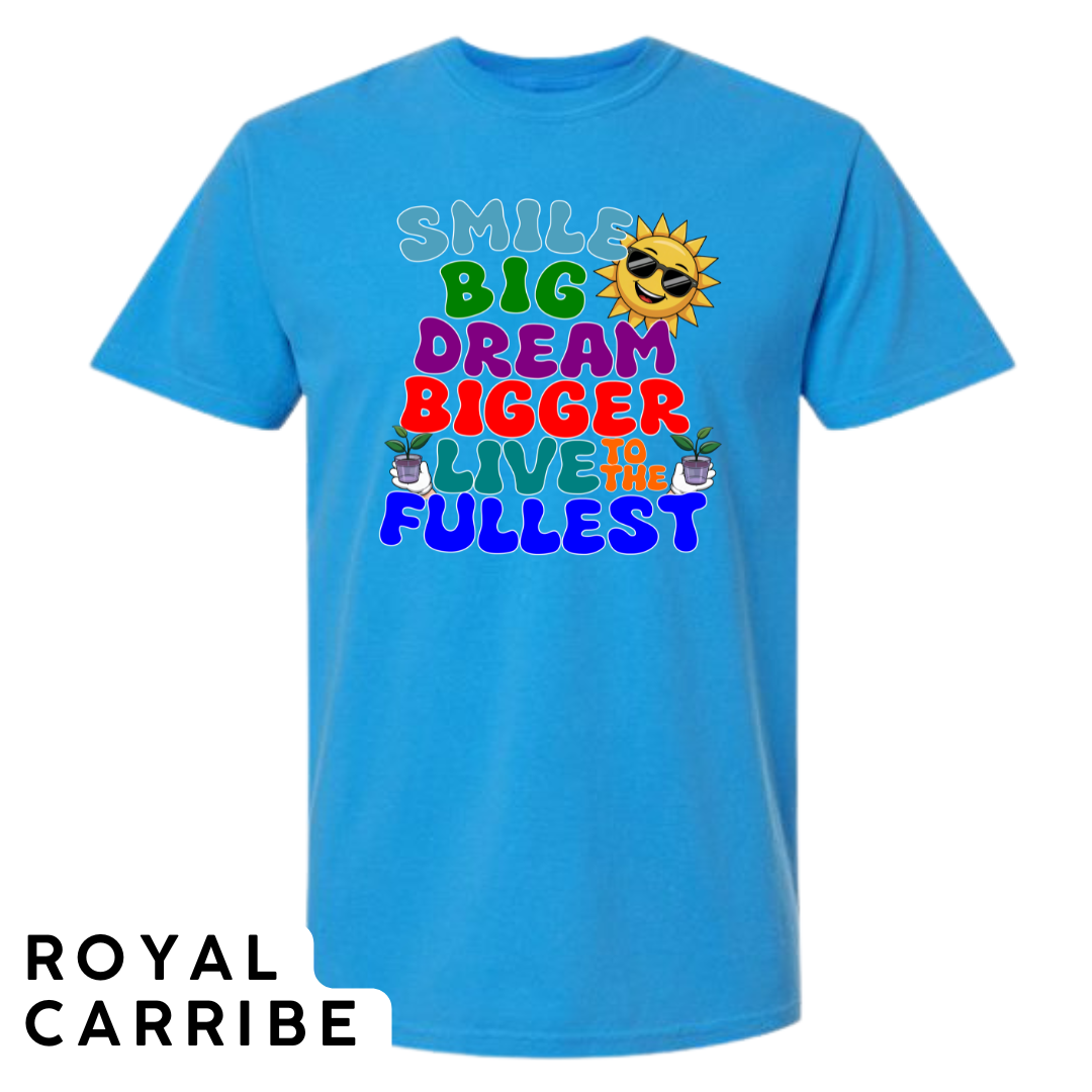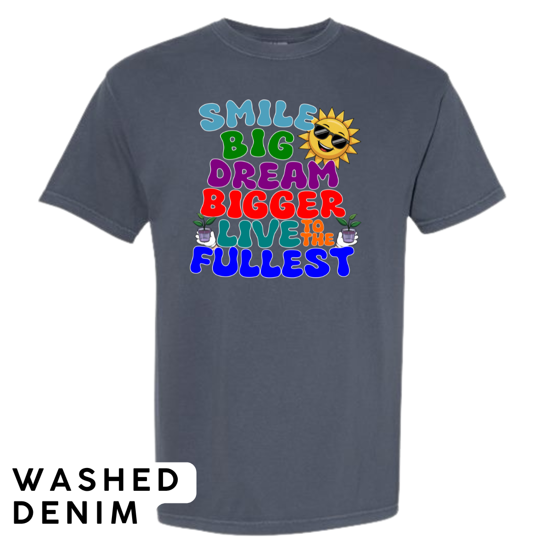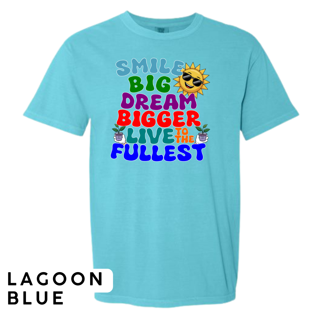 To keep your Smile Big, Dream Bigger, Live to the Fullest Tee looking fresh: